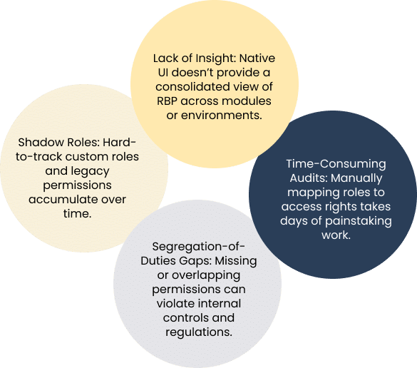 RBP Visibility delivers a single, clear workbook that consolidates Role-Based Permissions across modules, roles, and tenants—highlighting exactly who has access to what, where, and when.