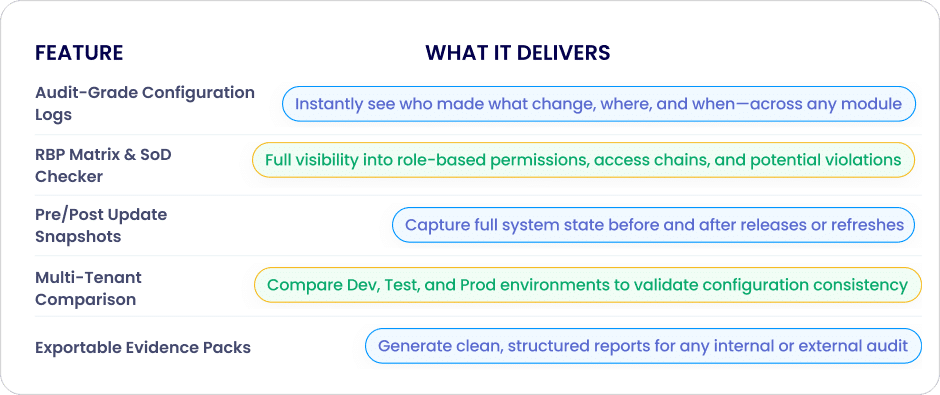 CodeBot captures, tracks, and organizes every SAP SuccessFactors configuration change—so internal and external audits become fast, accurate, and fully traceable.