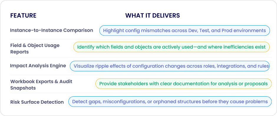 - Visualize impacted fields, workflows, and business rules before changes are applied